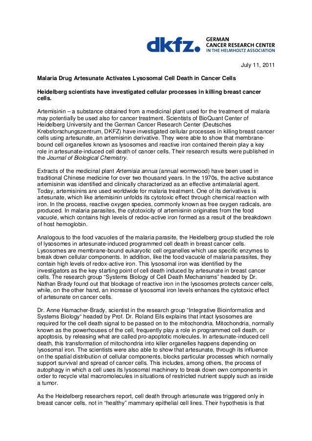 Application of artemisinin derivatives for treatment and control malaria Application of artemisinin derivatives for treatment and control malaria cancer cell growth. Tolerance or resistance? ... Read Document